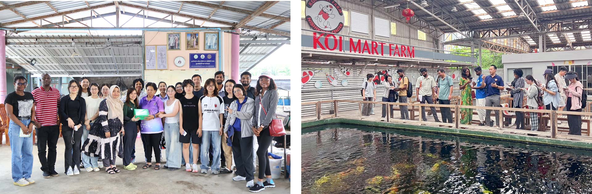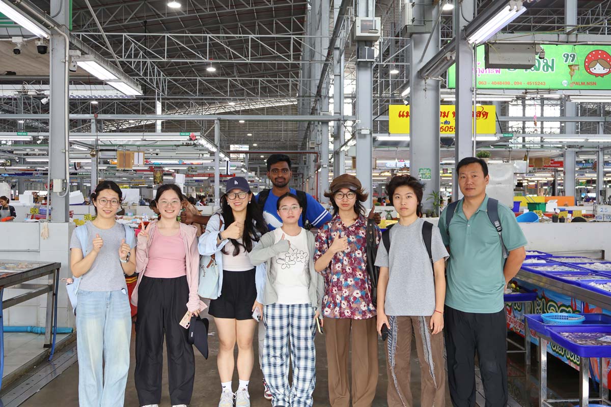 The program combined academic lectures and field-based learning, providing participants with exposure to aquaculture practices in Thailand. Students attended lectures on seed production, fish nutrition, and advanced aquaculture vaccinology, and participated in field visits to key aquaculture facilities, including the Department of Fisheries’ Inland Fisheries Research and Development Center, hybrid catfish hatchery, polyculture farm, koi carp farm, seabass and giant freshwater prawn hatcheries, and Talaad Thai, the largest wholesale seafood market in ASEAN.